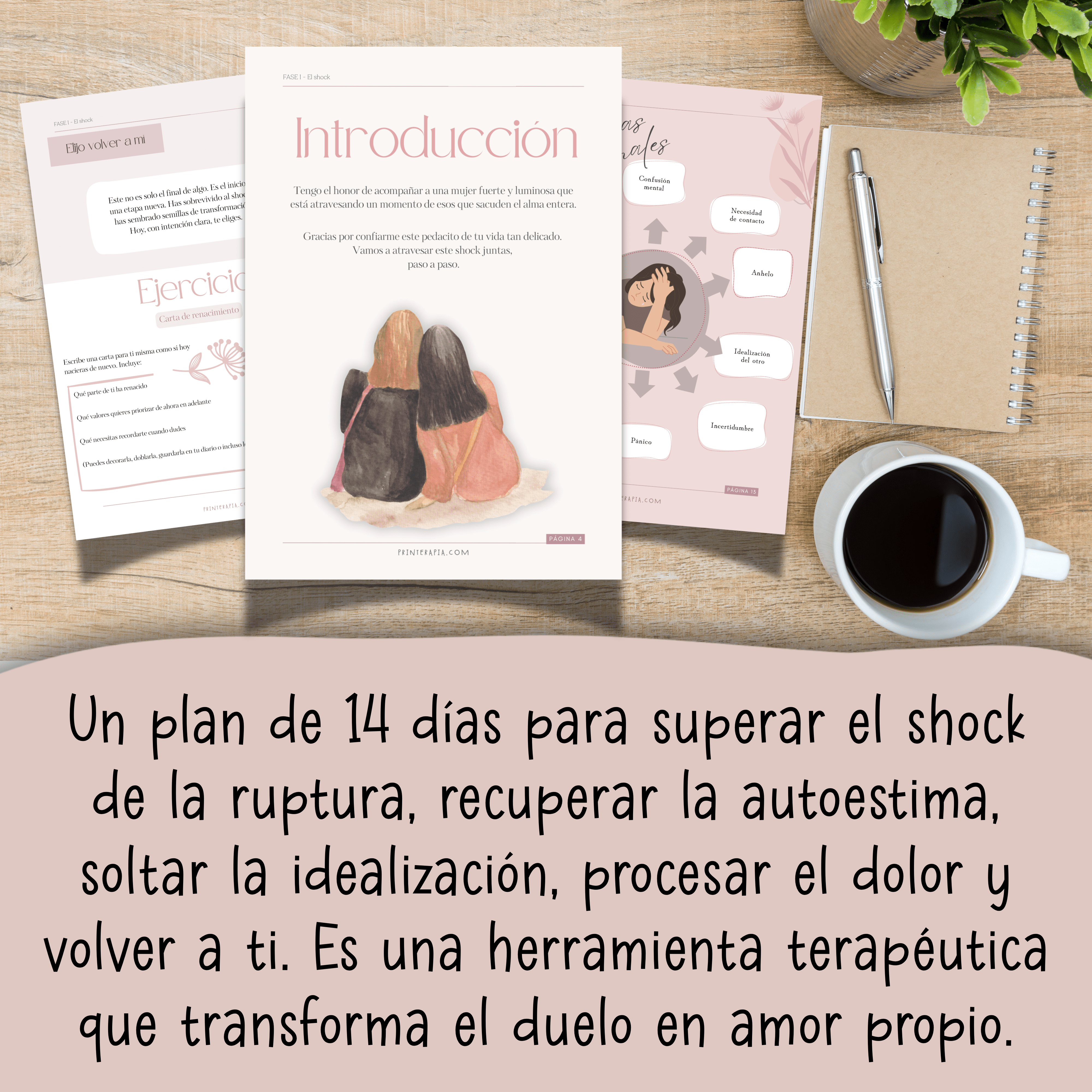 Hablemos claro; el shock de una ruptura puede ser muy intenso, confuso… y a veces simplemente devastador!!! Por eso, he creado este diario digital para que puedas entender mejor tus emociones y empezar a sanar. Los ejercicios y consejos son herramientas que te ayudarán a sobrellevar el impacto inicial y la sorpresa que vienen con una separación. Este diario imprimible será tu lugar seguro para procesar tus emociones, descubrir maneras saludables de afrontar la situación y, finalmente, avanzar hacia la sanación y el amor propio.