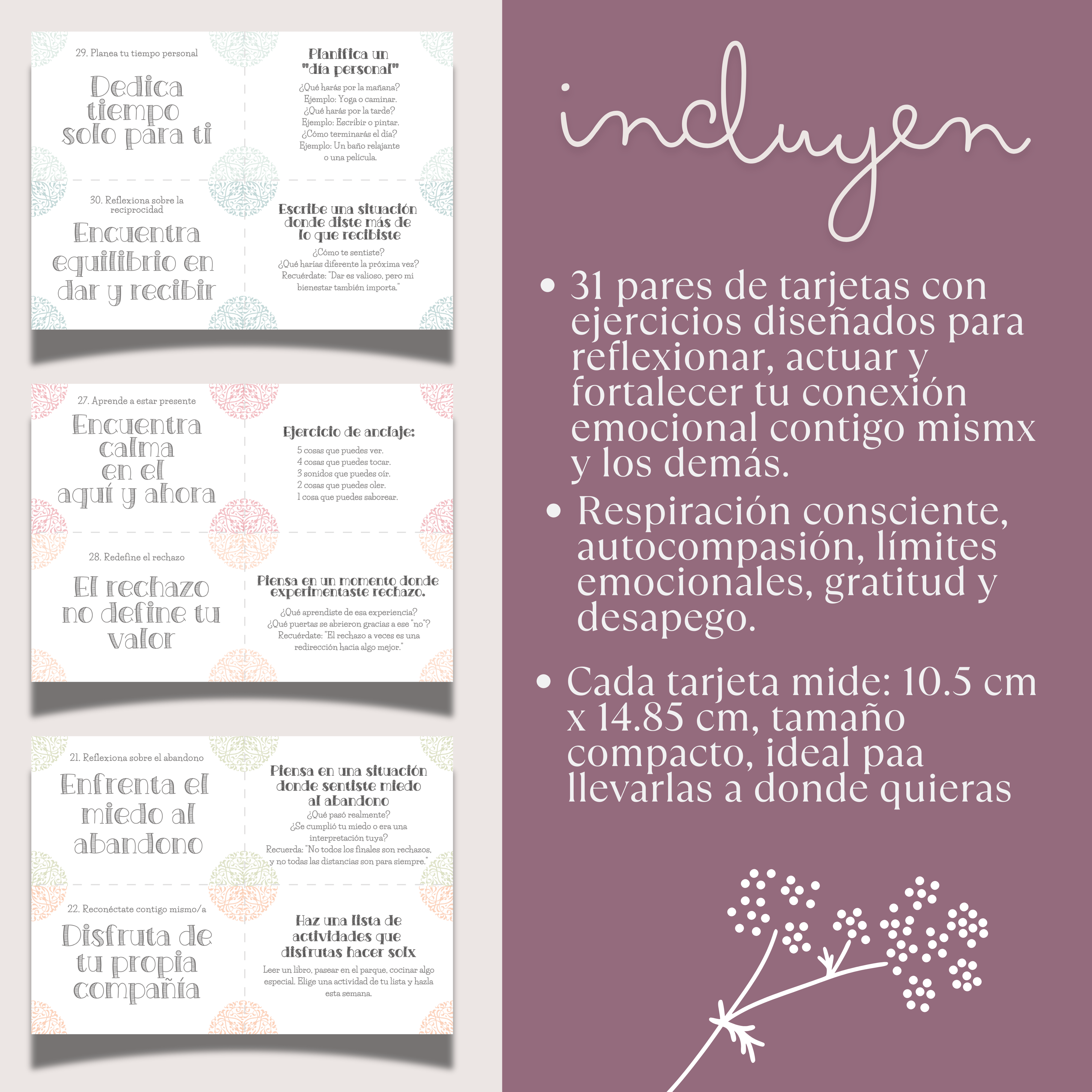 Estas tarjetas son perfectas como herramientas complementarias para la ansiedad, para reflexionar en tu día a día o como regalo único para alguien que busca mejorar su salud emocional.