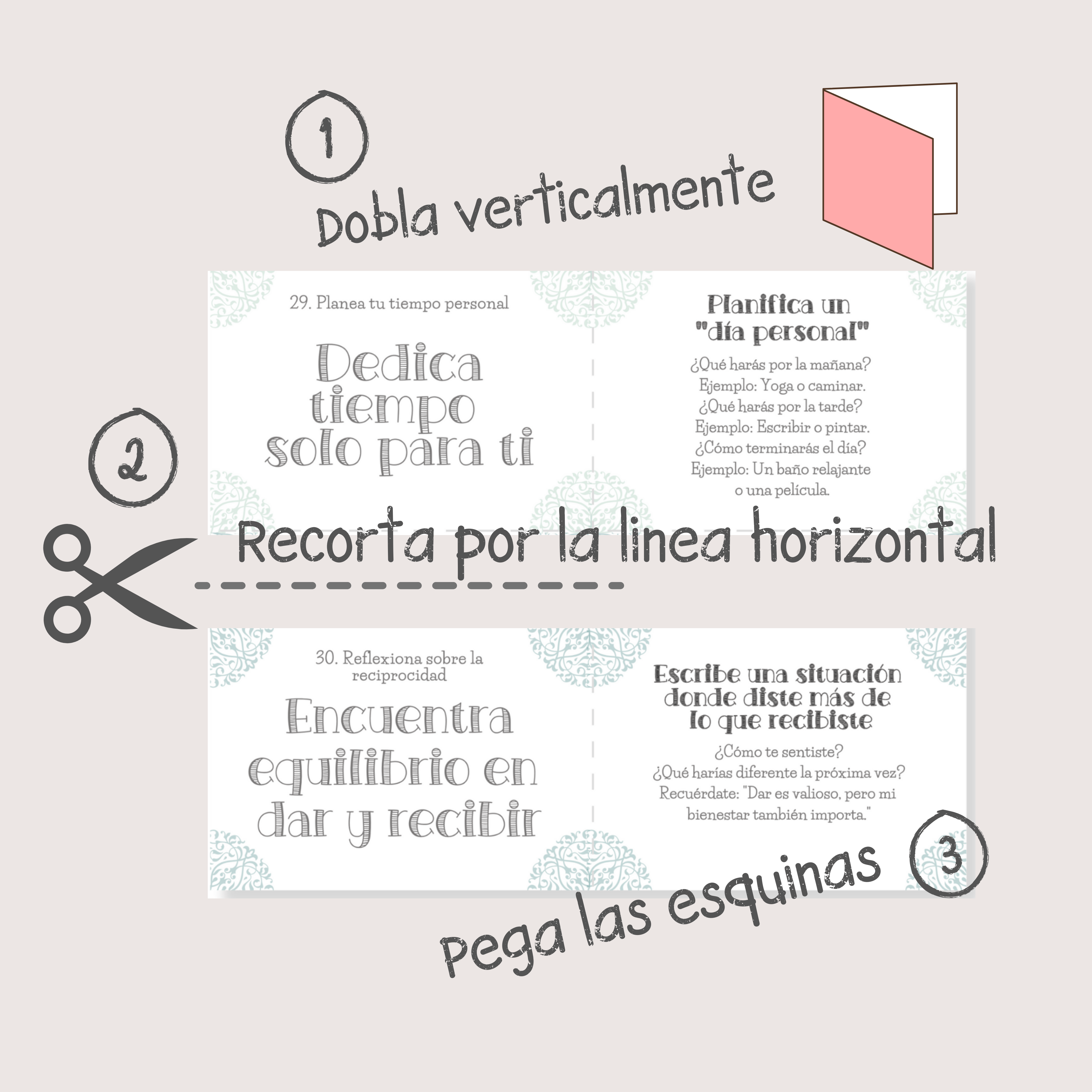 Tamaño de cada tarjeta: 10.5 cm x 14.85 cm (cuarta parte de una hoja A4), perfecto para llevar contigo.